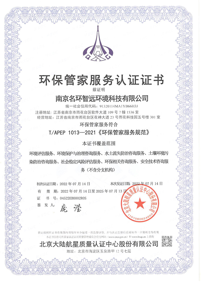 環(huán)保管家服務(wù)認(rèn)證中文版